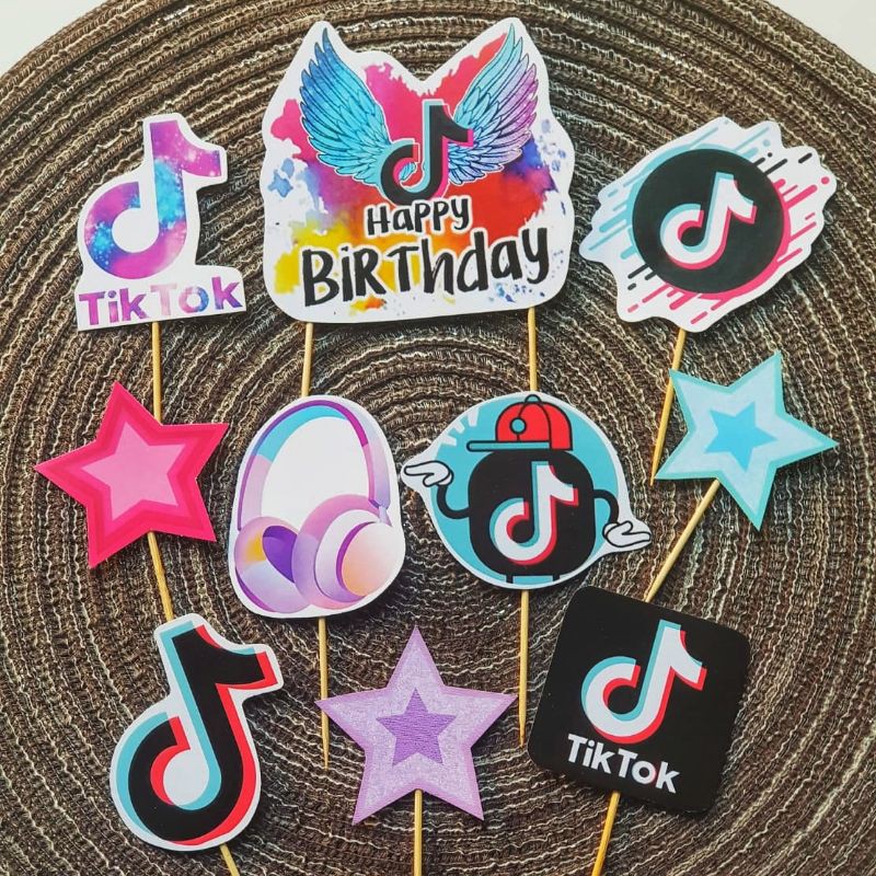 Tiktok Birthday Cake Topper 1 Set Isi 10 Pc Shopee Indonesia